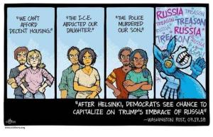 Russia-gate works to distract us from our own problems; divide the progressive movement and set strict limits on dissent. Even Sanders pays tribute to the very weapons used against him by repeating the Russia-gate mantra. For a campaign so focused on completing the mission of the first New Deal, it is a self-inflicted wound. The first New Deal remains unfinished precisely because of Russia-gates’ predecessors: the Cold War and McCarthyism.