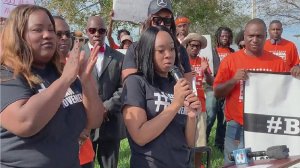Above photo: Yasmine James (center with microphone), the McDonald’s worker attacked while working at a St. Petersburg restaurant, spoke to a crowd at a worker rally Tuesday. Spectrum News image. Thanks to Popular Resistance.