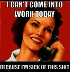 For at-home workers, the sick out and slow down are tailor-made for you. Call in sick sometime in the first week in May. Mild symptoms; a day or two, severe; a week or more. How sick are you? Only you know. Get it? Or, take a sick day, go back for one, then take another sick day. Can’t take the whole day, take half a day. Can’t take half a day just slow down — cut your production in half or more.